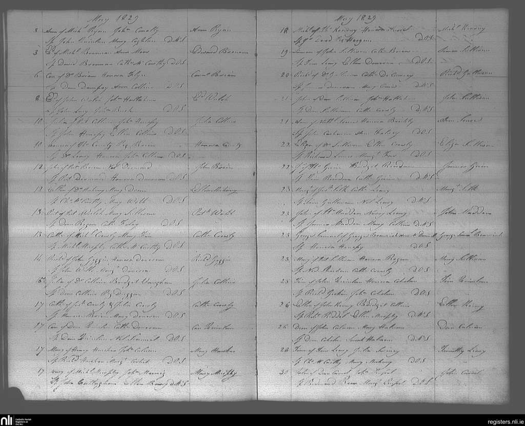 Bandon; County of Cork; Diocese of Cork and Ross. Baptisms, May 1829