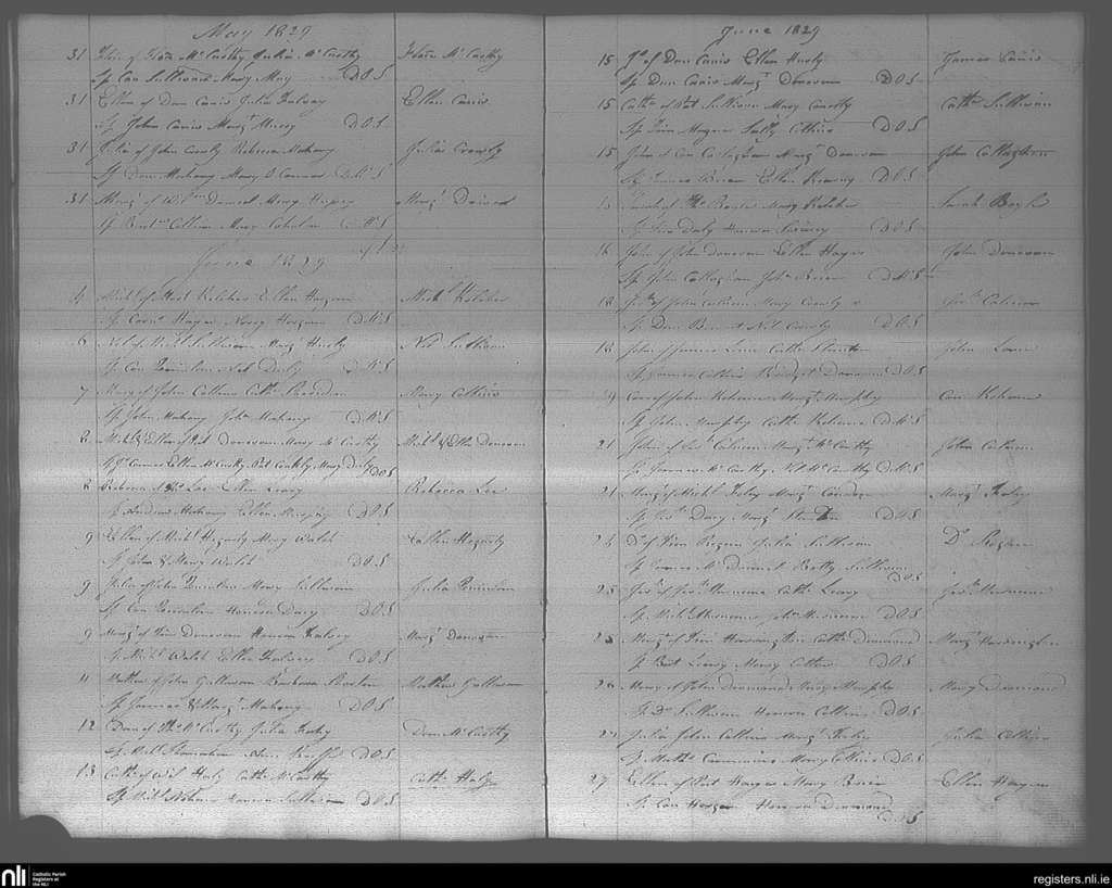Bandon; County of Cork; Diocese of Cork and Ross. Baptisms, May 1829 to June 1829