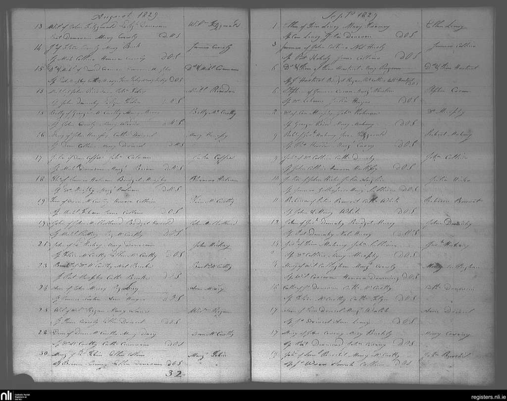 Bandon; County of Cork; Diocese of Cork and Ross. Baptisms, Aug. 1829 to Sep. 1829