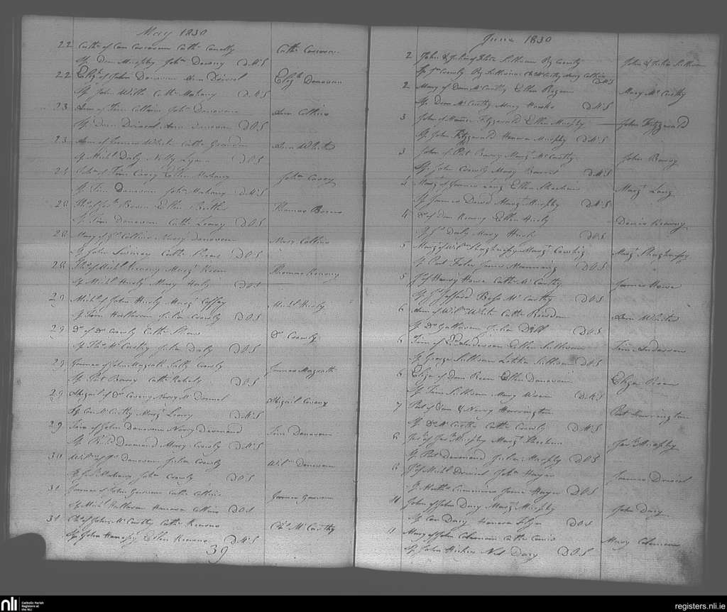 Bandon; County of Cork; Diocese of Cork and Ross. Baptisms, May 1830 to June 1830