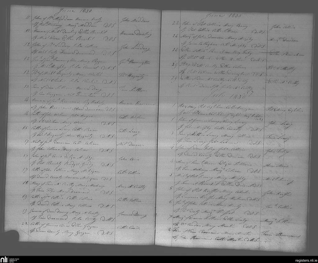 Bandon; County of Cork; Diocese of Cork and Ross. Baptisms, June 1830 to July 1830