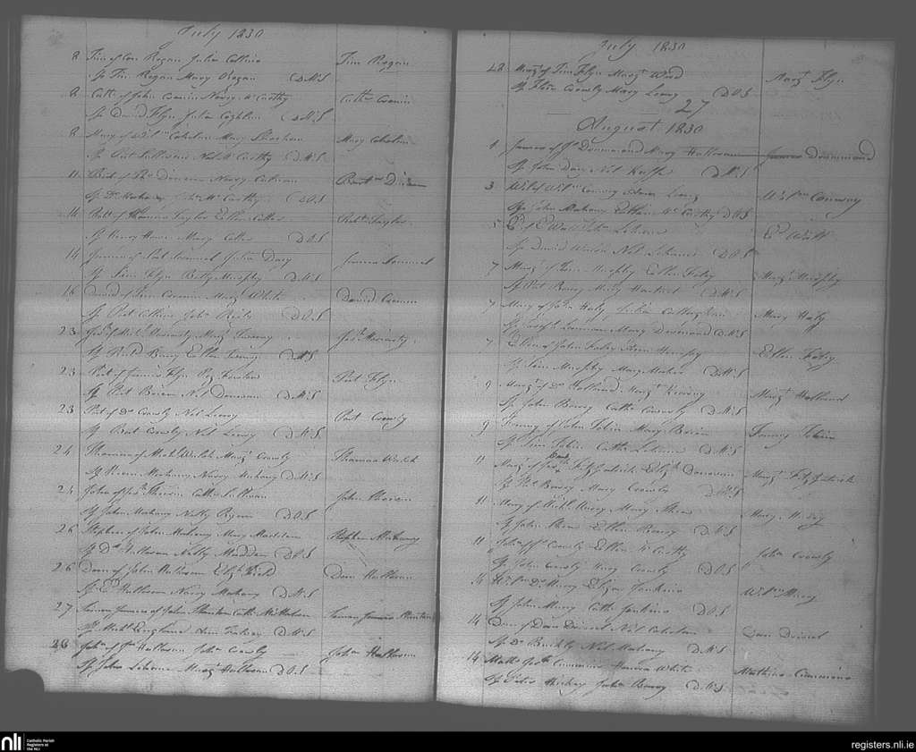 Bandon; County of Cork; Diocese of Cork and Ross. Baptisms, July 1830 to Aug. 1830