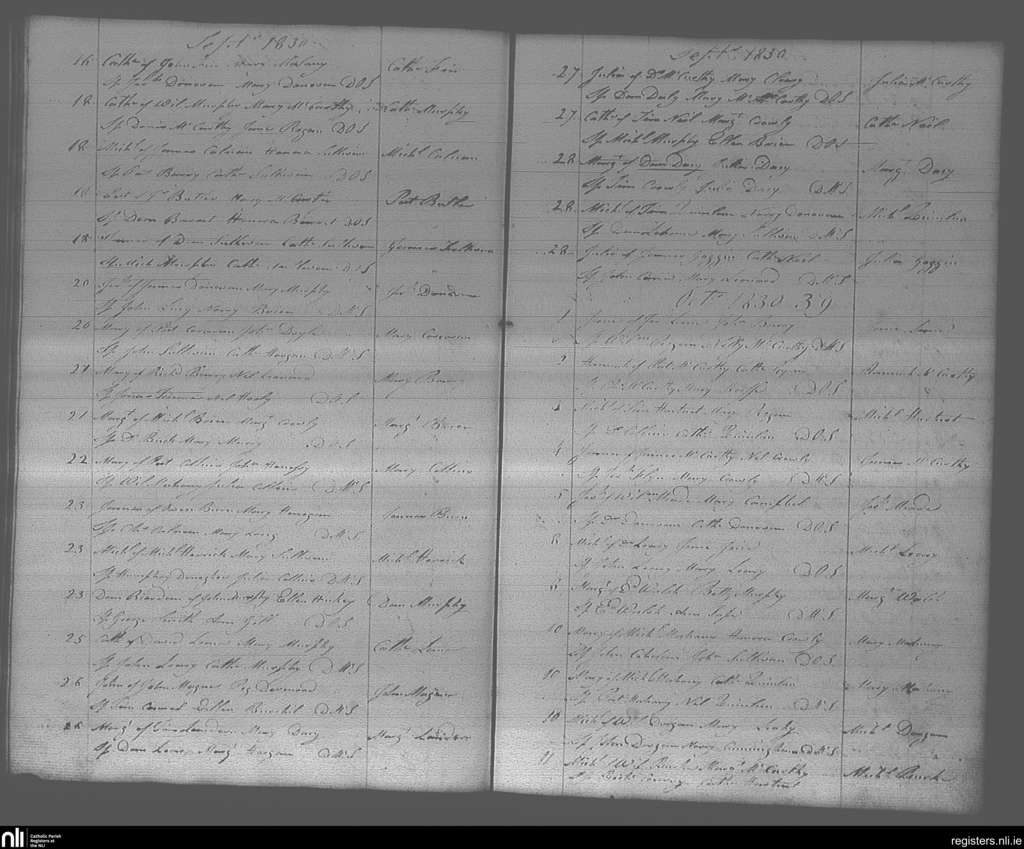 Bandon; County of Cork; Diocese of Cork and Ross. Baptisms, Sep. 1830 to Oct. 1830