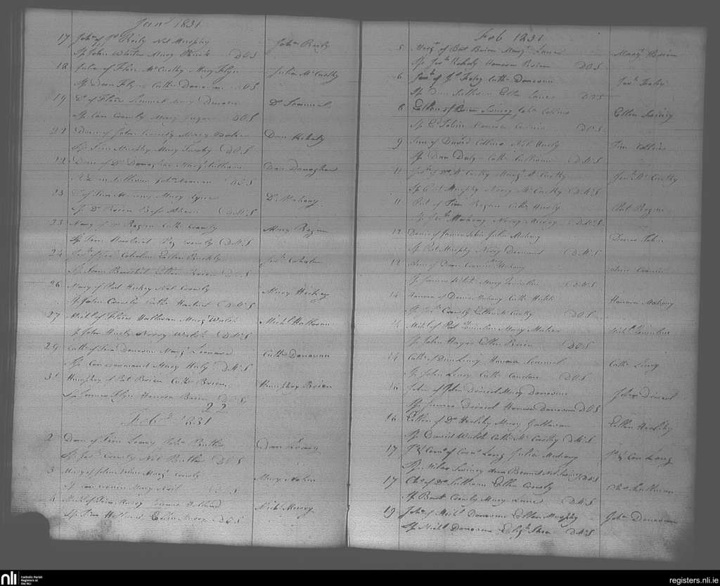Bandon; County of Cork; Diocese of Cork and Ross. Baptisms, Jan. 1831 to Feb. 1831