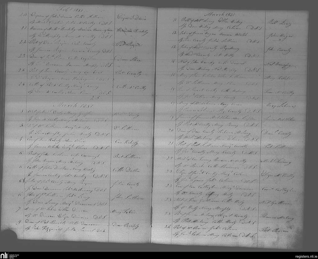 Bandon; County of Cork; Diocese of Cork and Ross. Baptisms, Feb. 1831 to Mar. 1831