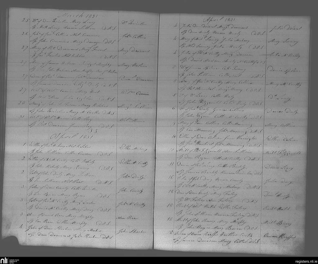Bandon; County of Cork; Diocese of Cork and Ross. Baptisms, Mar. 1831 to Apr. 1831