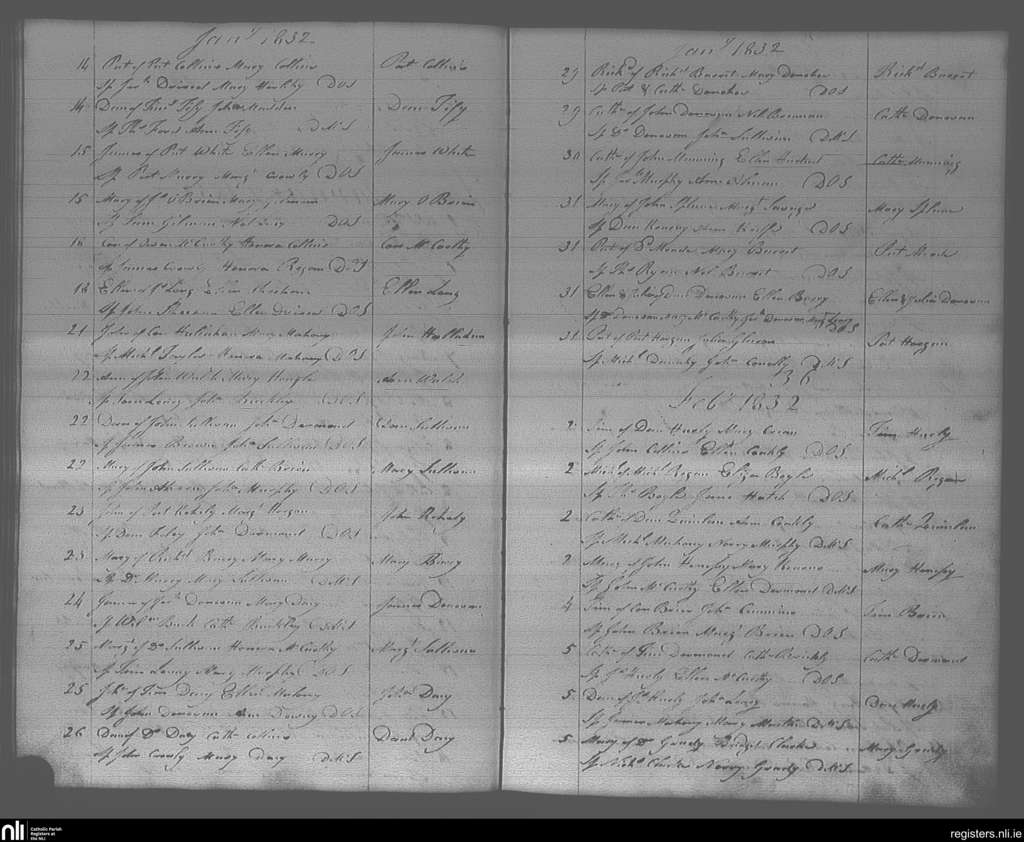 Bandon; County of Cork; Diocese of Cork and Ross. Baptisms, Jan. 1832 to Feb. 1832