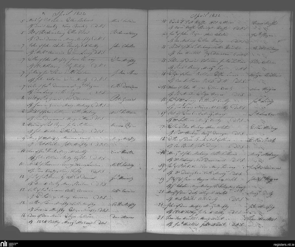 Bandon; County of Cork; Diocese of Cork and Ross. Baptisms, Apr. 1832