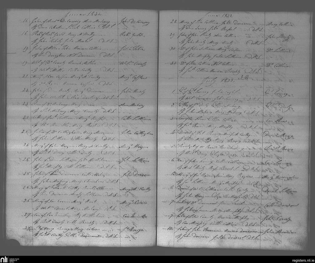 Bandon; County of Cork; Diocese of Cork and Ross. Baptisms, June 1832 to July 1832