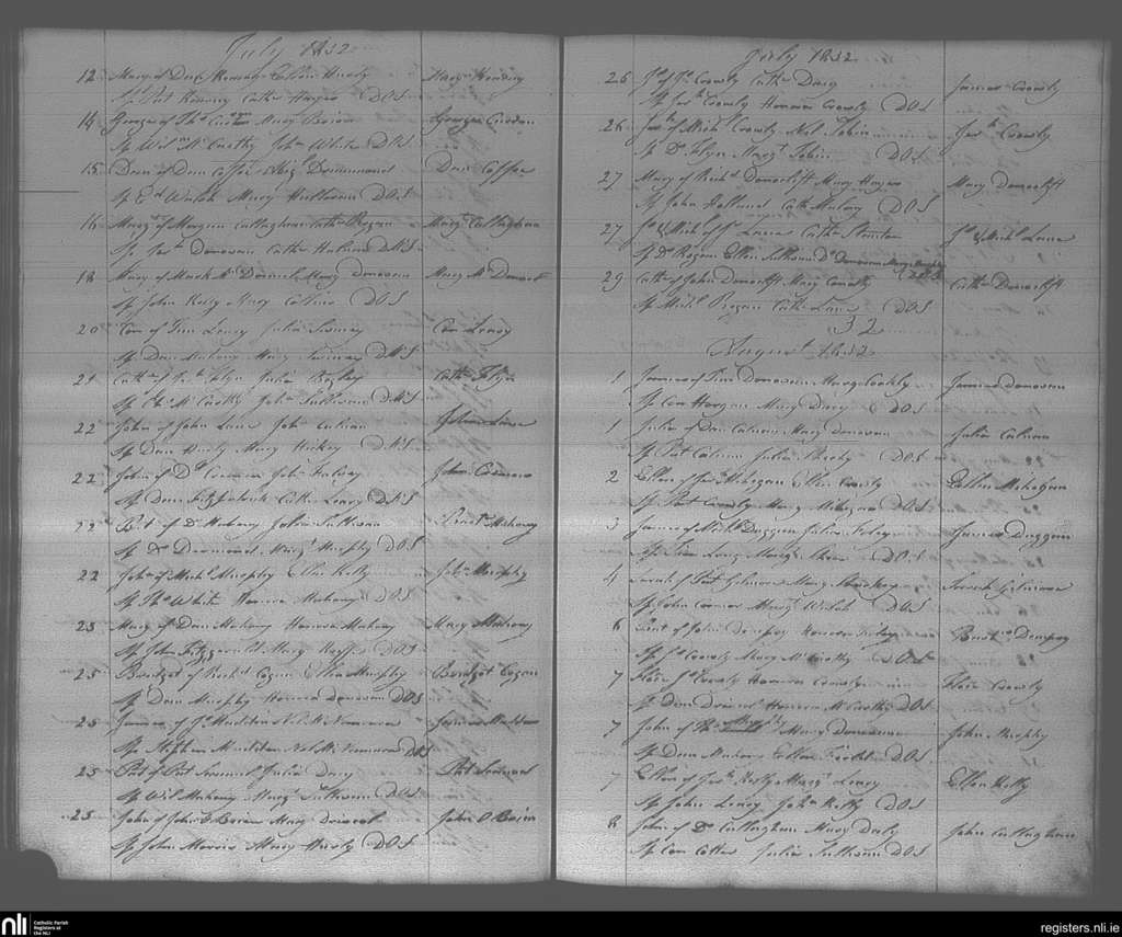 Bandon; County of Cork; Diocese of Cork and Ross. Baptisms, July 1832 to Aug. 1832