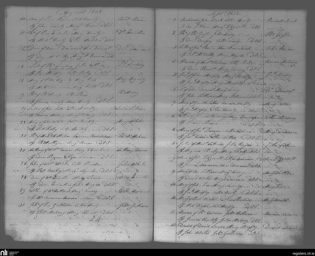 Bandon; County of Cork; Diocese of Cork and Ross. Baptisms, Aug. 1832 to Sep. 1832
