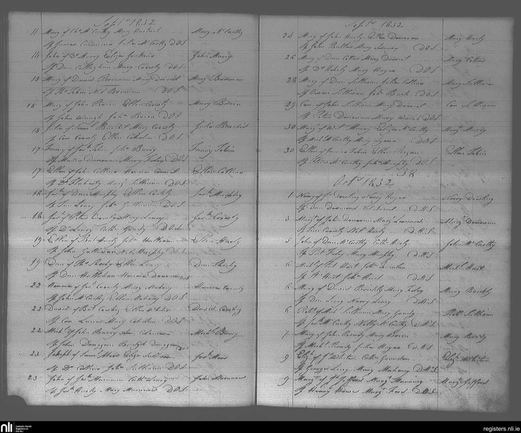 Bandon; County of Cork; Diocese of Cork and Ross. Baptisms, Sep. 1832 to Oct. 1832