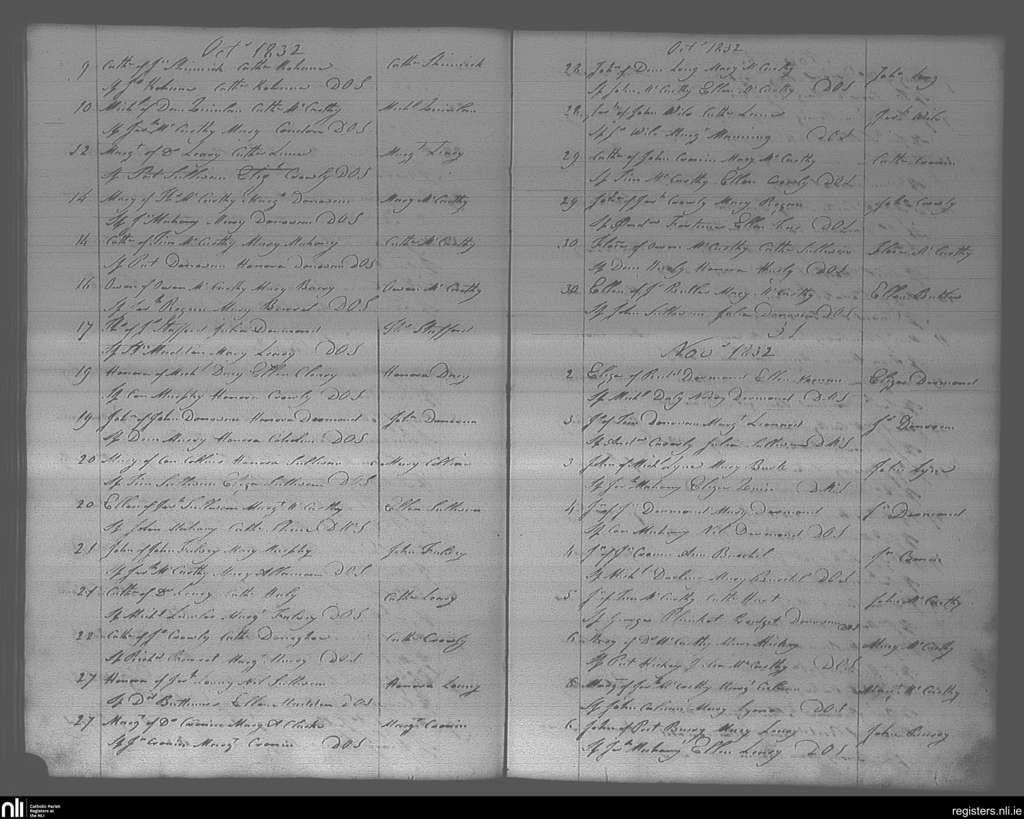 Bandon; County of Cork; Diocese of Cork and Ross. Baptisms, Oct. 1832 to Nov. 1832