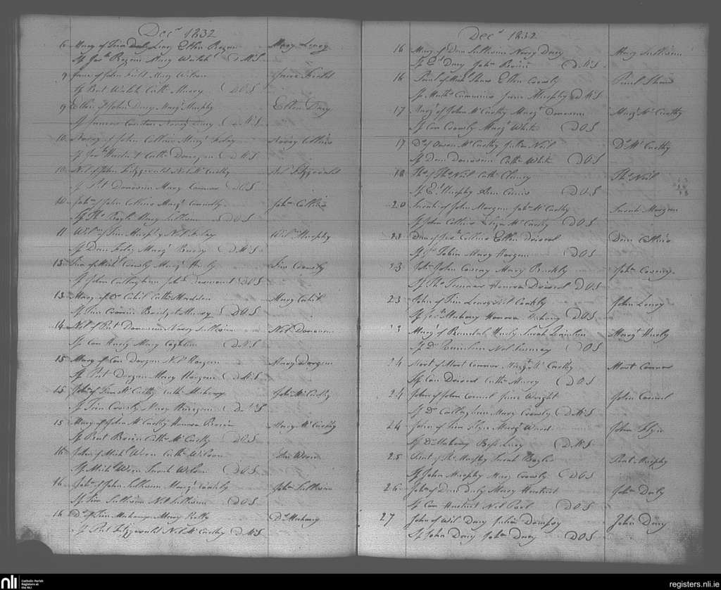 Bandon; County of Cork; Diocese of Cork and Ross. Baptisms, Dec. 1832