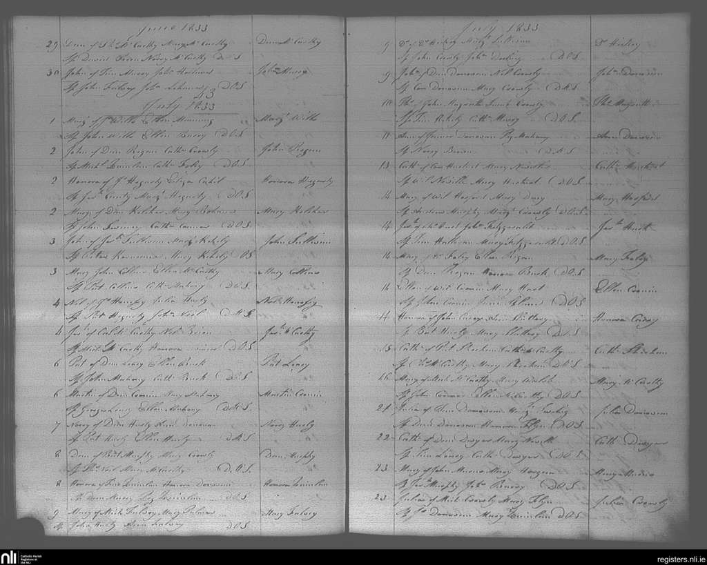 Bandon; County of Cork; Diocese of Cork and Ross. Baptisms, June 1833 to July 1833