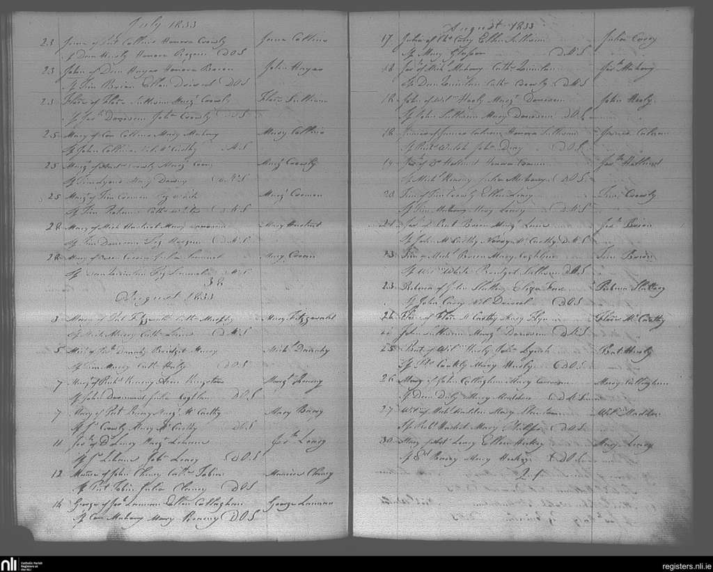 Bandon; County of Cork; Diocese of Cork and Ross. Baptisms, July 1833 to Aug. 1833