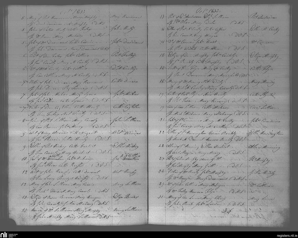 Bandon; County of Cork; Diocese of Cork and Ross. Baptisms, Oct. 1833