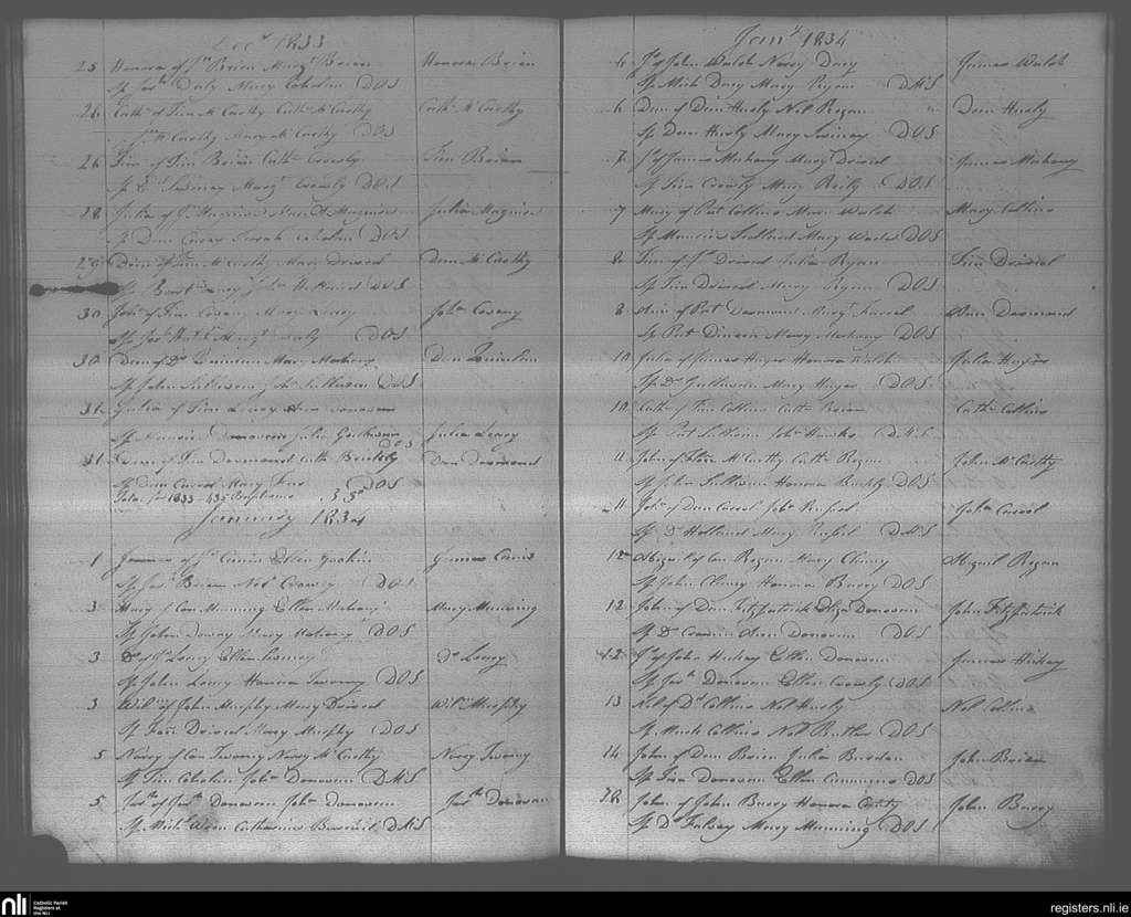 Bandon; County of Cork; Diocese of Cork and Ross. Baptisms, Dec. 1833 to Jan. 1834