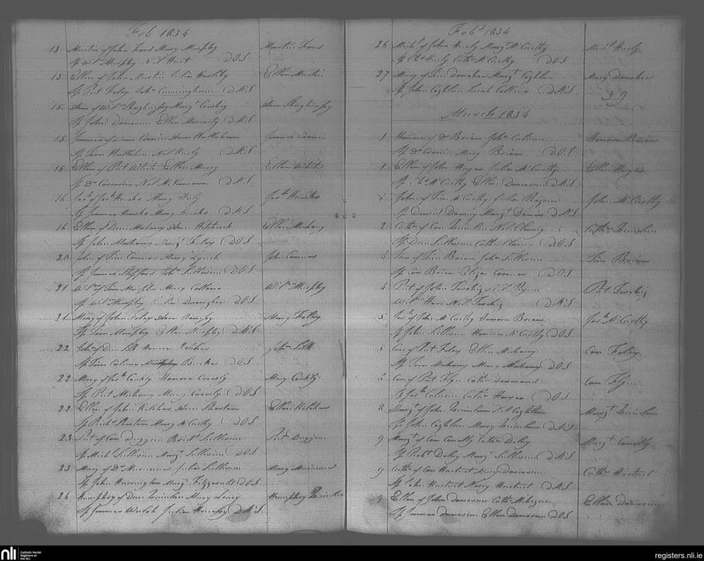 Bandon; County of Cork; Diocese of Cork and Ross. Baptisms, Feb. 1834 to Mar. 1834