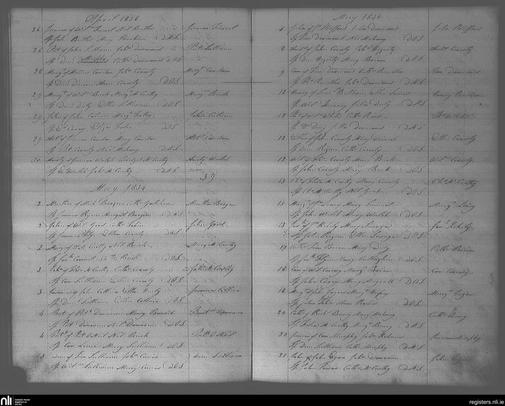 Bandon; County of Cork; Diocese of Cork and Ross. Baptisms, Apr. 1834 to May 1834