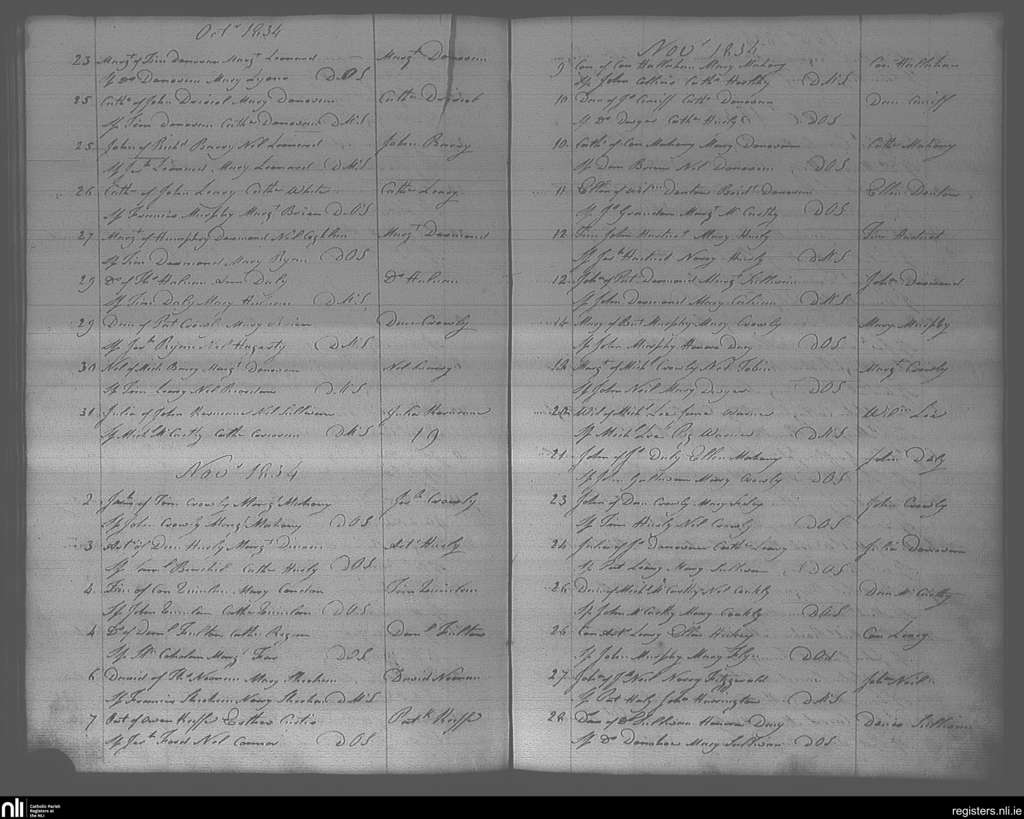 Bandon; County of Cork; Diocese of Cork and Ross. Baptisms, Oct. 1834 to Nov. 1834