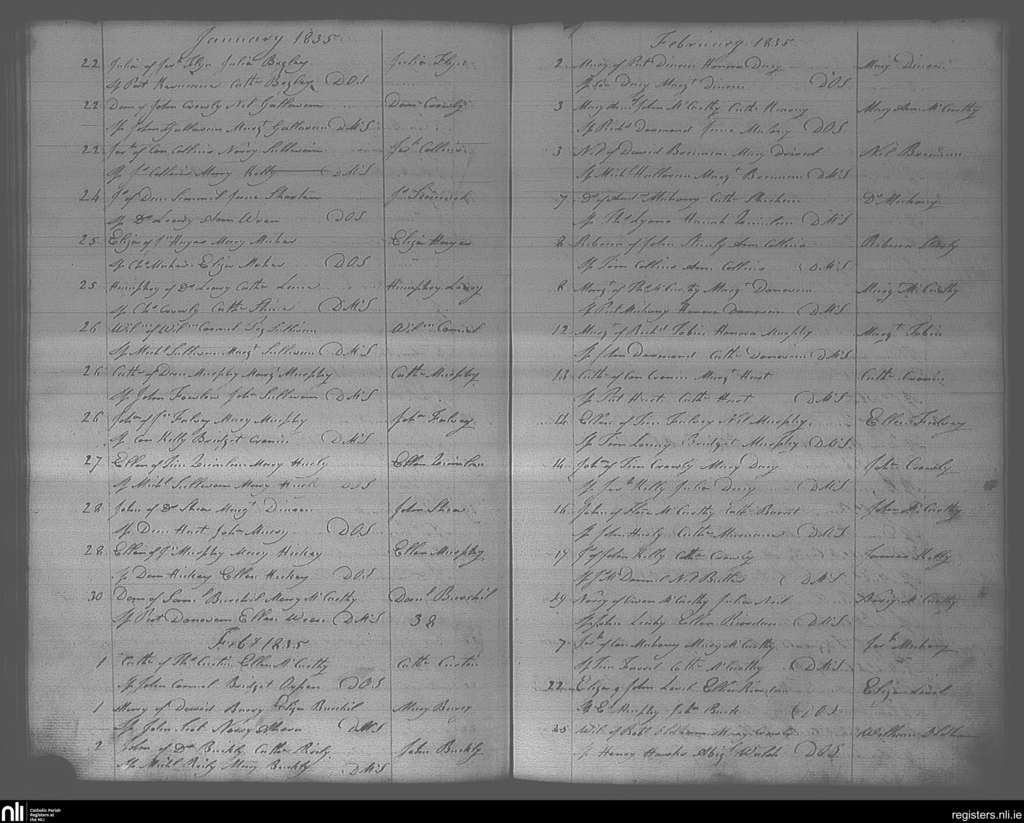 Bandon; County of Cork; Diocese of Cork and Ross. Baptisms, Jan. 1835 to Feb. 1835