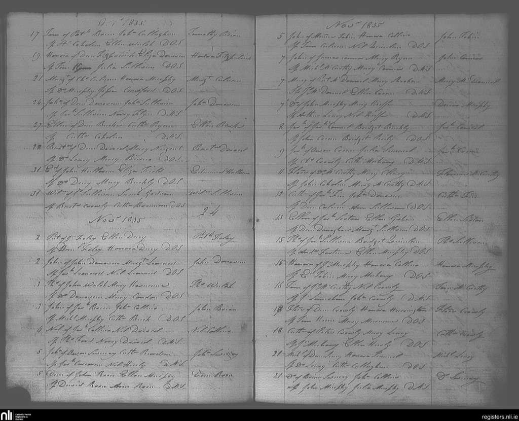 Bandon; County of Cork; Diocese of Cork and Ross. Baptisms, Oct. 1835 to Nov. 1835