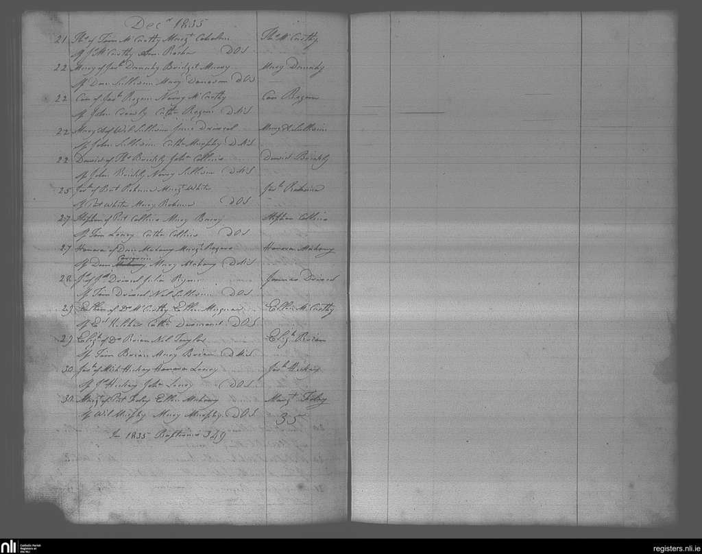 Bandon; County of Cork; Diocese of Cork and Ross. Baptisms, Dec. 1835