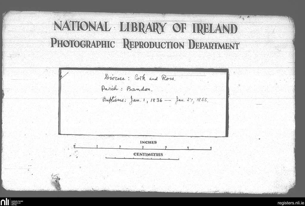 Bandon; County of Cork; Diocese of Cork and Ross. Baptisms