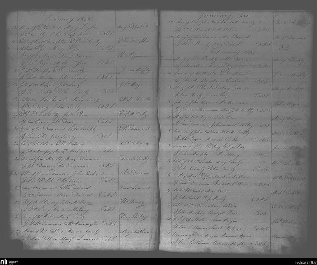 Bandon; County of Cork; Diocese of Cork and Ross. Baptisms, Jan. 1836 to Feb. 1836