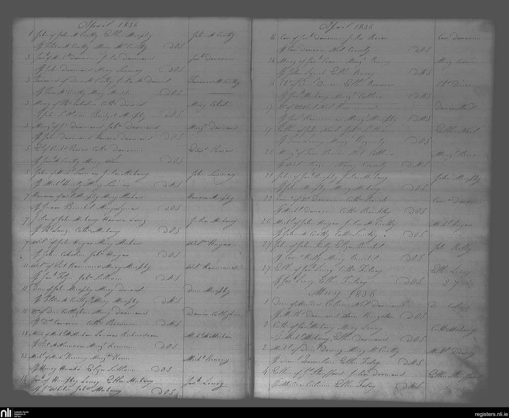 Bandon; County of Cork; Diocese of Cork and Ross. Baptisms, Apr. 1836 to May 1836