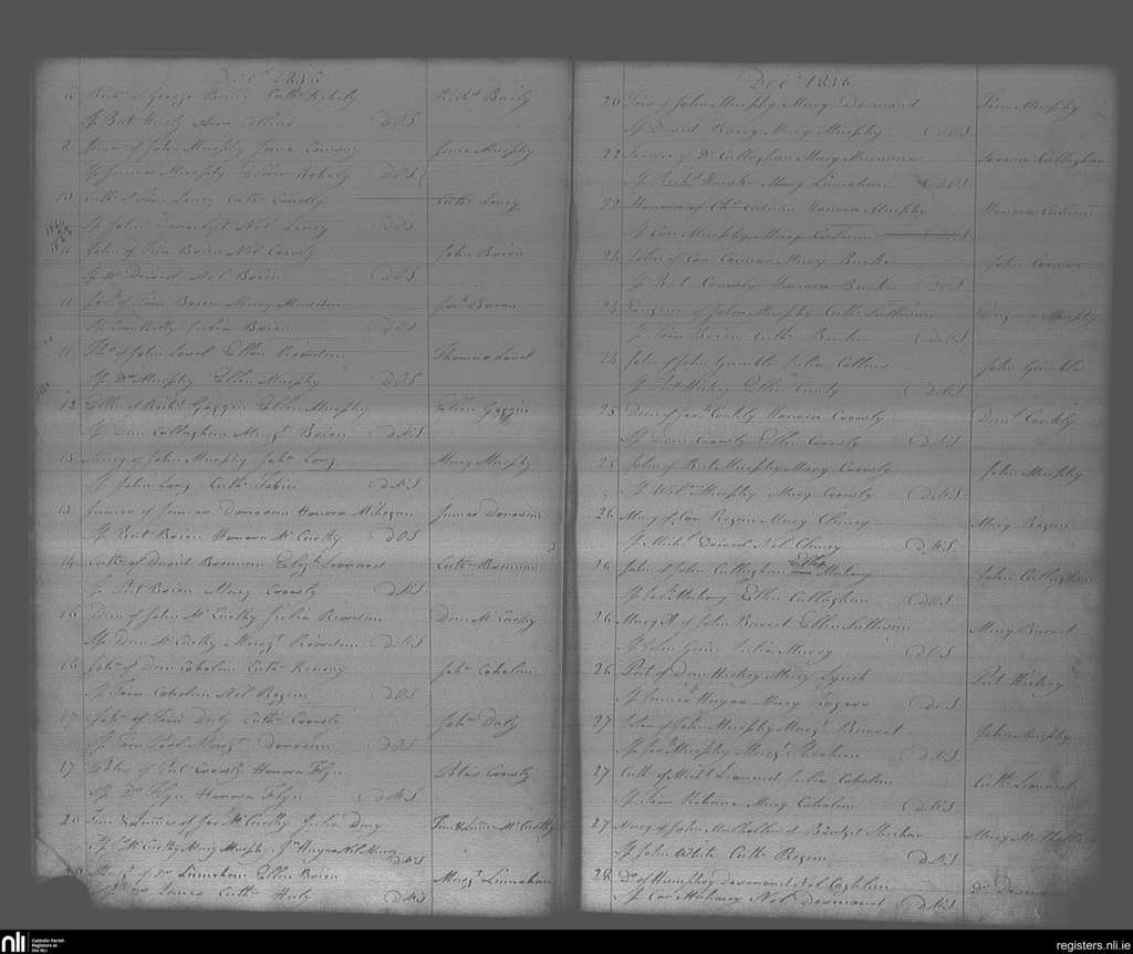 Bandon; County of Cork; Diocese of Cork and Ross. Baptisms, Dec. 1836