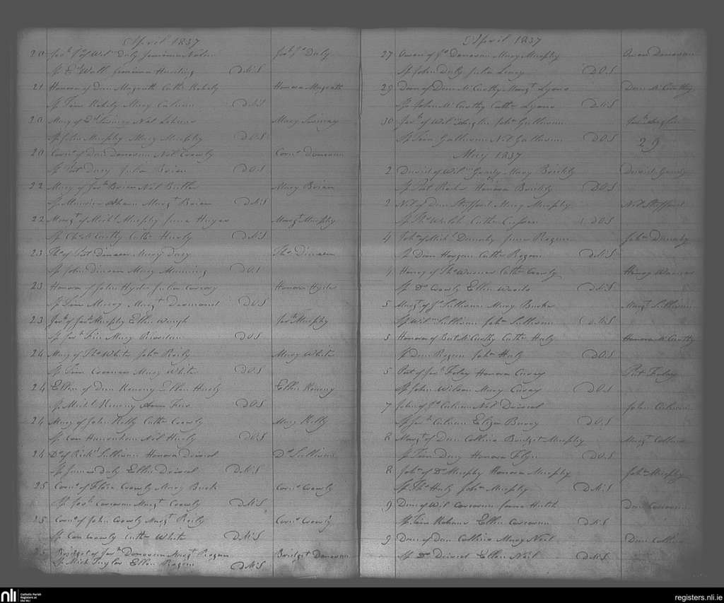 Bandon; County of Cork; Diocese of Cork and Ross. Baptisms, Apr. 1837 to May 1837