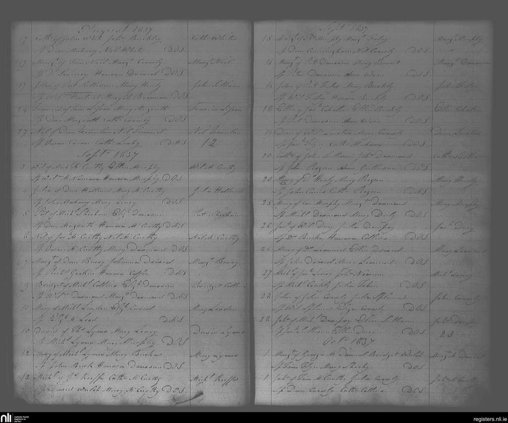 Bandon; County of Cork; Diocese of Cork and Ross. Baptisms, Aug. 1837 to Oct. 1837