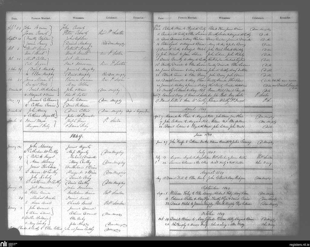 Bandon; County of Cork; Diocese of Cork and Ross. Marriages, Sep. 1848 to Oct. 1849