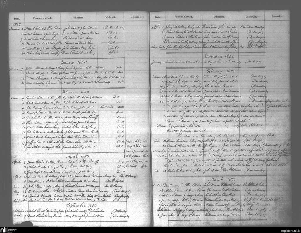 Bandon; County of Cork; Diocese of Cork and Ross. Marriages, Nov. 1849 to Mar. 1851