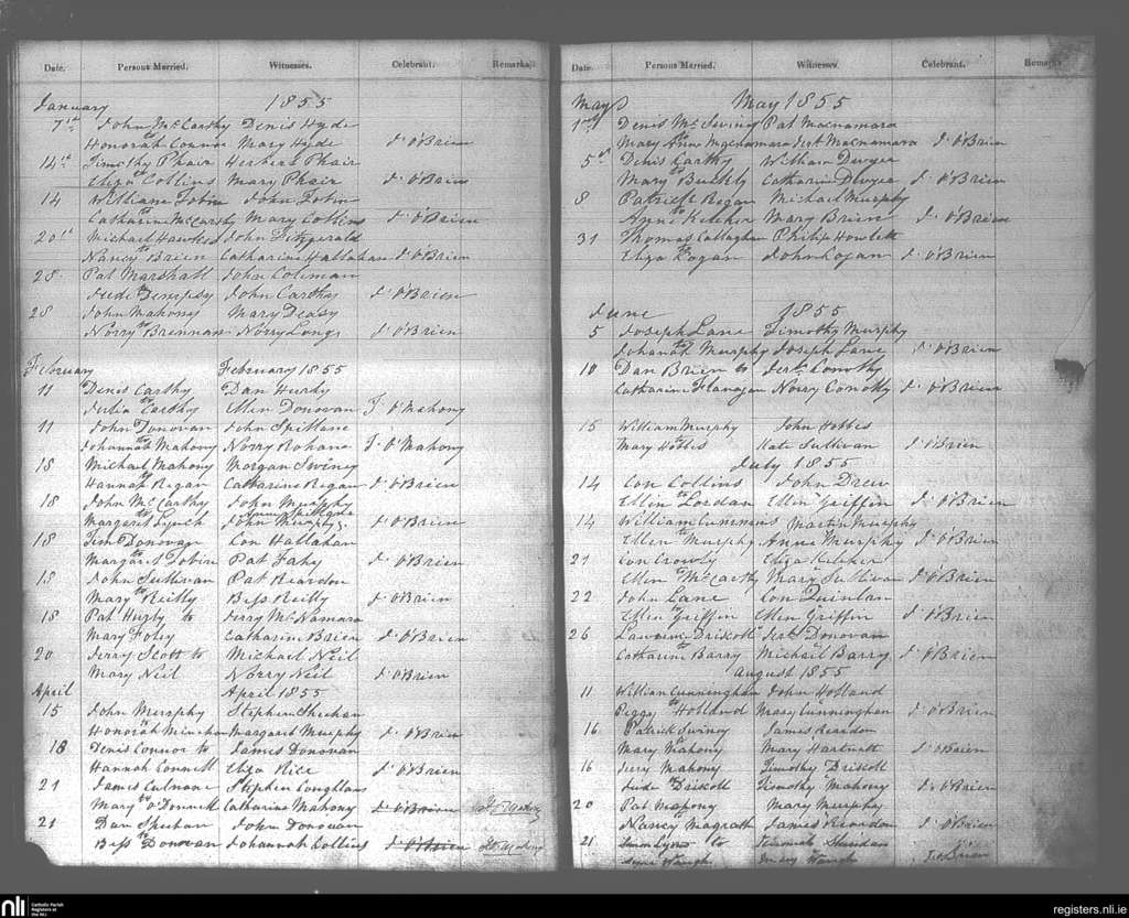 Bandon; County of Cork; Diocese of Cork and Ross. Marriages, Jan. 1855 to Aug. 1855