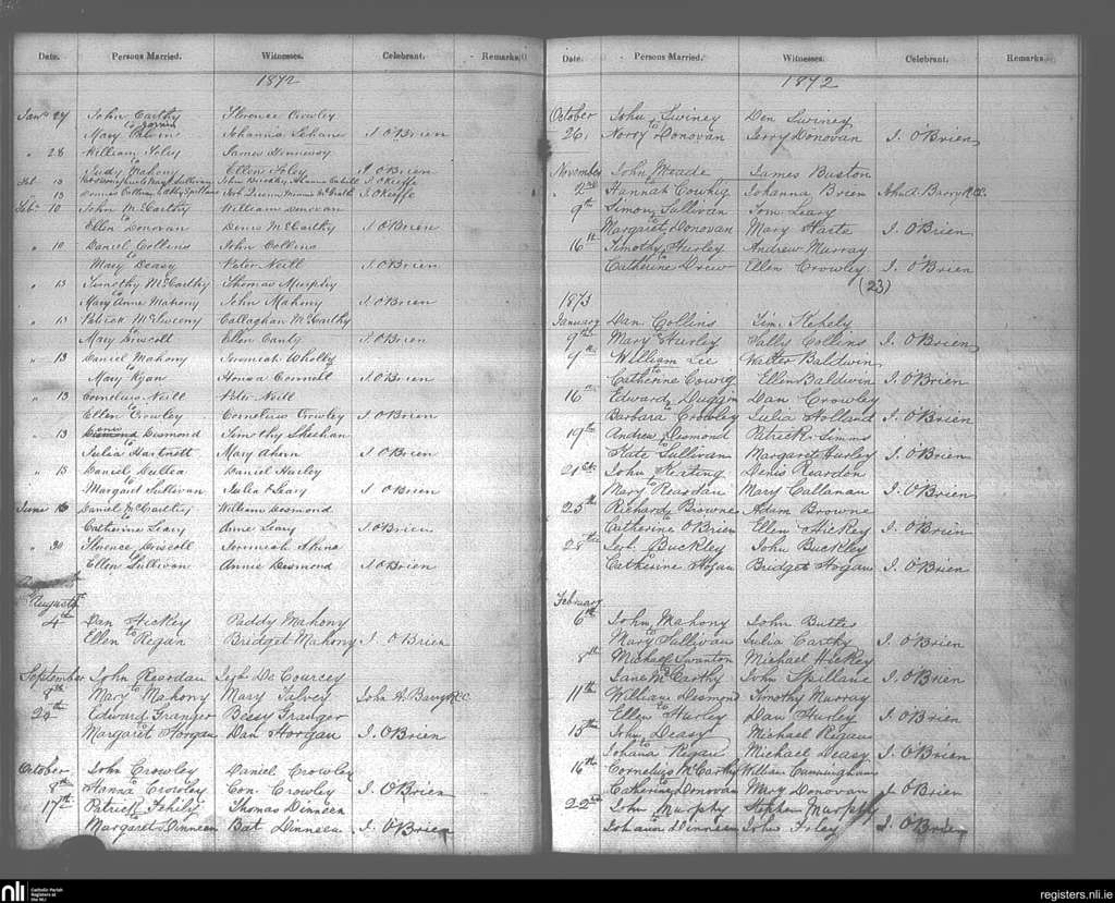 Bandon; County of Cork; Diocese of Cork and Ross. Marriages, Jan. 1872 to Feb. 1873