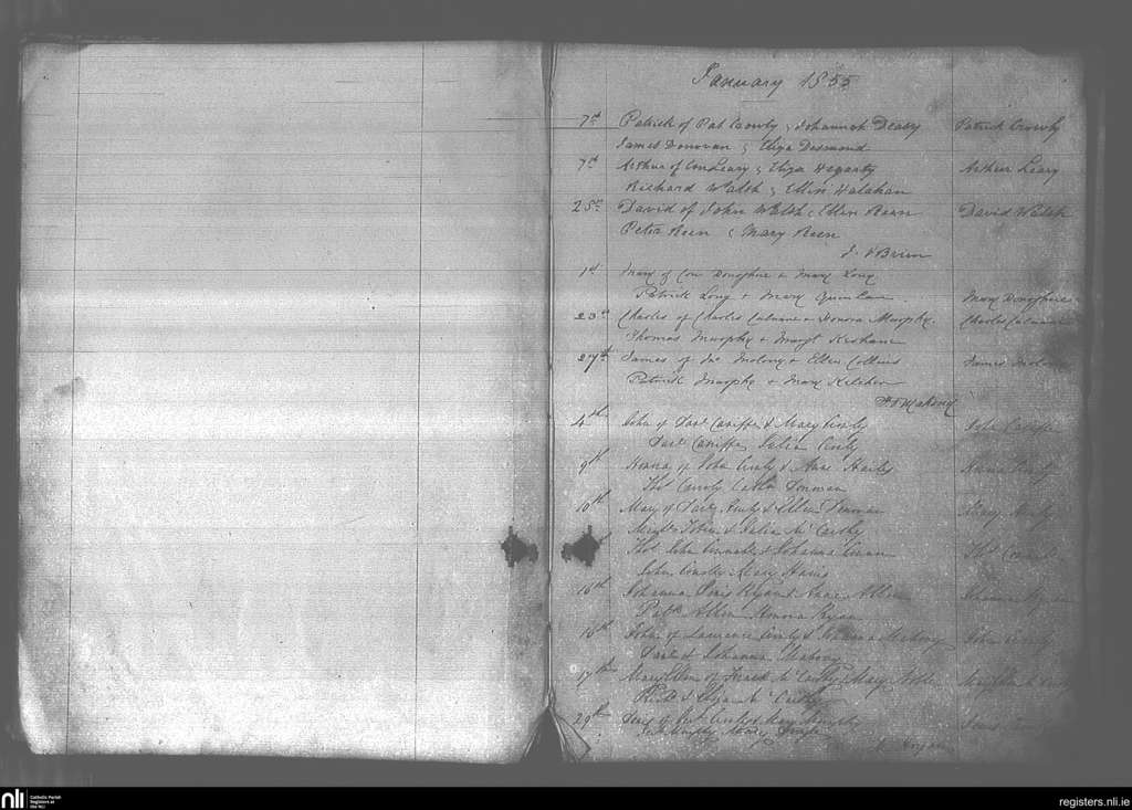 Bandon; County of Cork; Diocese of Cork and Ross. Baptisms, Jan. 1855