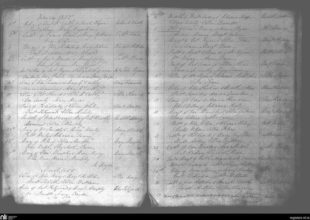 Bandon; County of Cork; Diocese of Cork and Ross. Baptisms, Feb. 1855 to Mar. 1855