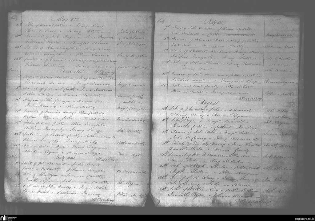 Bandon; County of Cork; Diocese of Cork and Ross. Baptisms, May 1855 to Aug. 1855