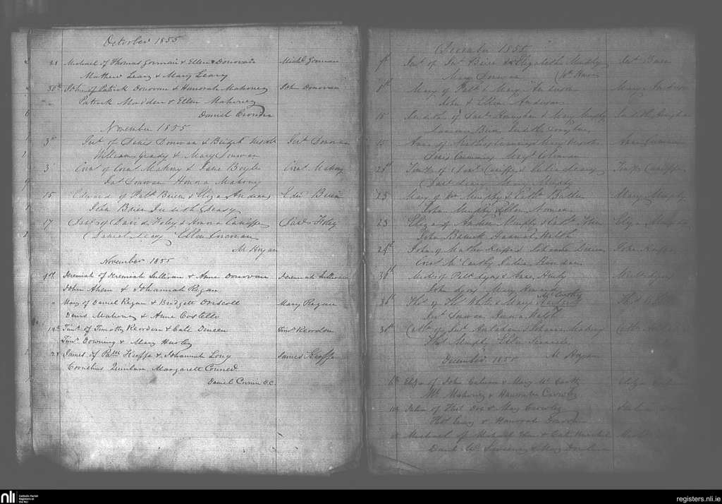 Bandon; County of Cork; Diocese of Cork and Ross. Baptisms, Oct. 1855 to Dec. 1855