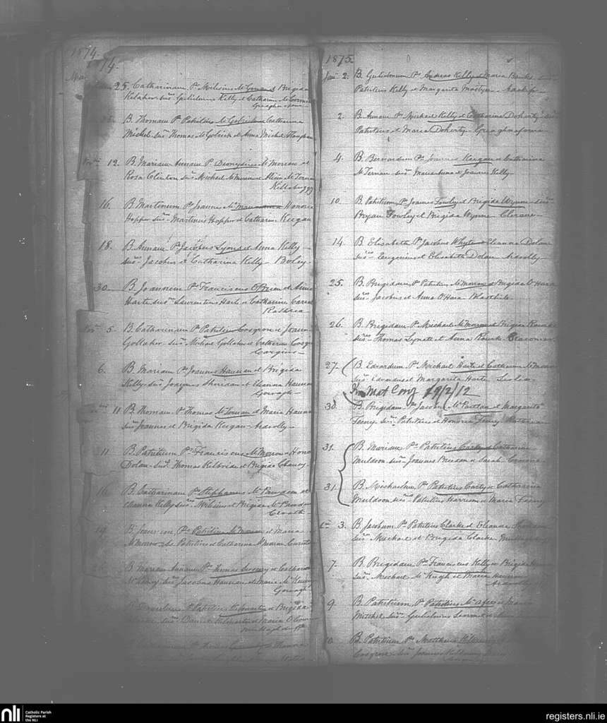 Killenummery; County of Sligo, Leitrim; Diocese of Ardagh. Baptisms, Oct. 1874 to Feb. 1875