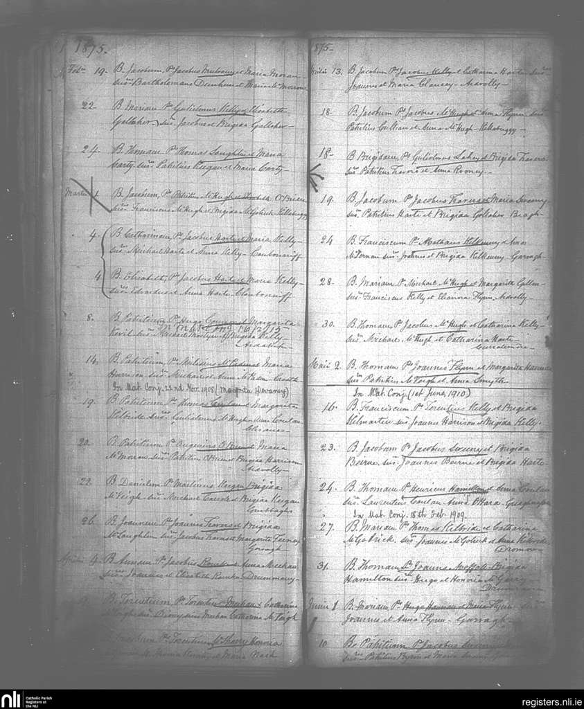 Killenummery; County of Sligo, Leitrim; Diocese of Ardagh. Baptisms, Feb. 1875 to June 1875