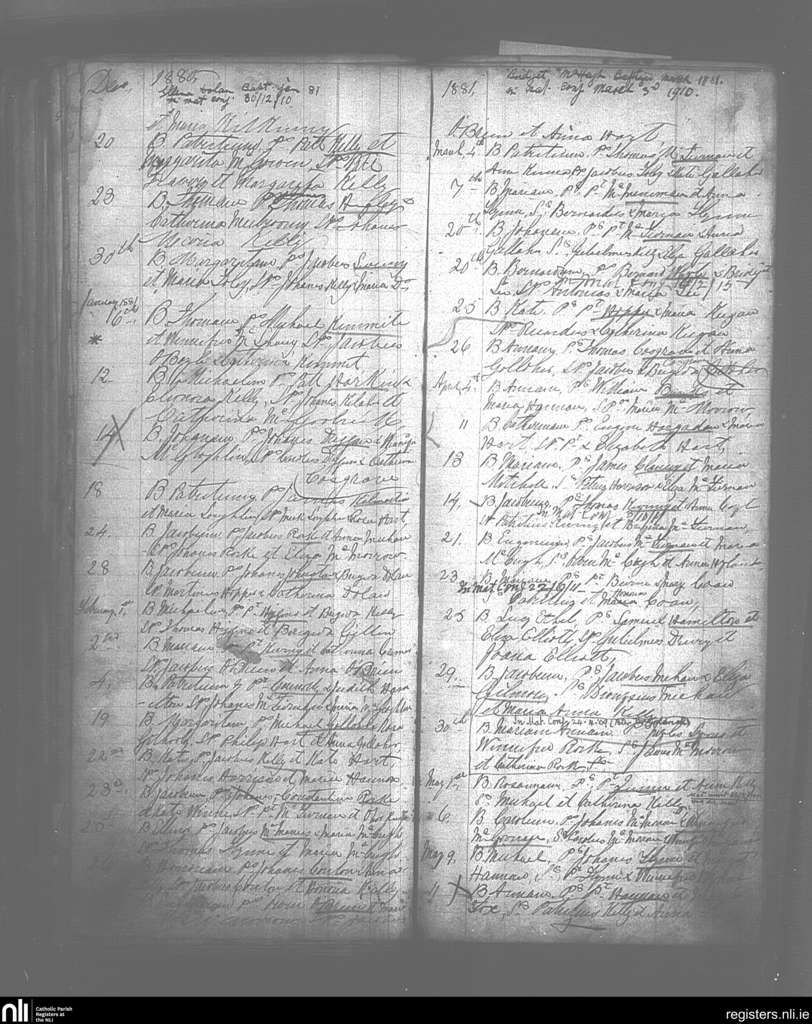 Killenummery; County of Sligo, Leitrim; Diocese of Ardagh. Baptisms, Dec. 1880 to May 1881