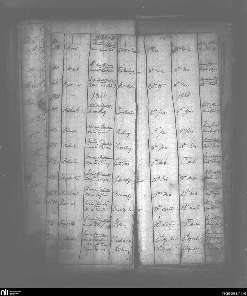 Killenummery; County of Sligo, Leitrim; Diocese of Ardagh. Baptisms, Dec. 1880 to Apr. 1881