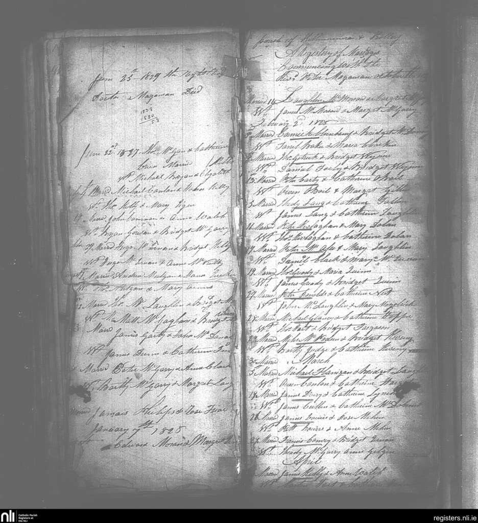 Killenummery; County of Sligo, Leitrim; Diocese of Ardagh. Marriages, June 1827 to Apr. 1828