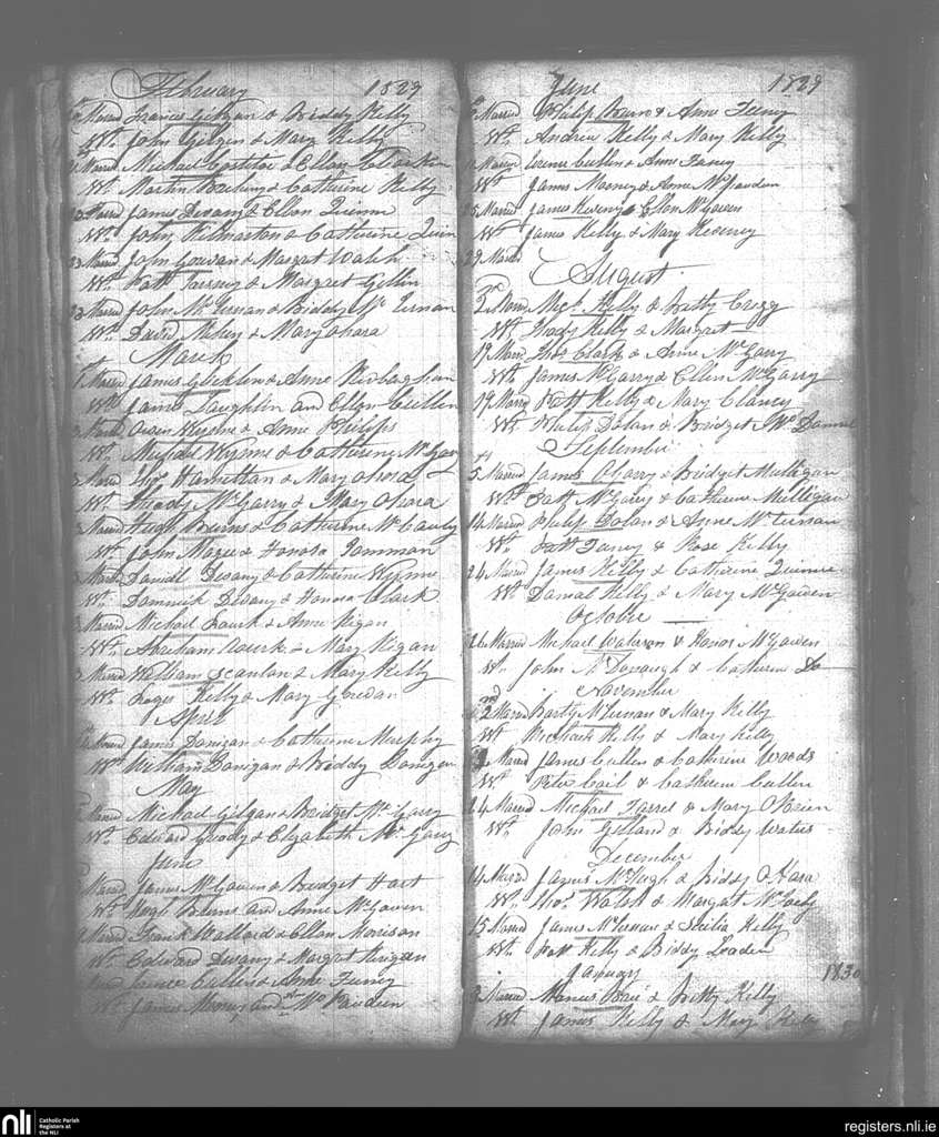 Killenummery; County of Sligo, Leitrim; Diocese of Ardagh. Marriages, Feb. 1829 to Jan. 1830
