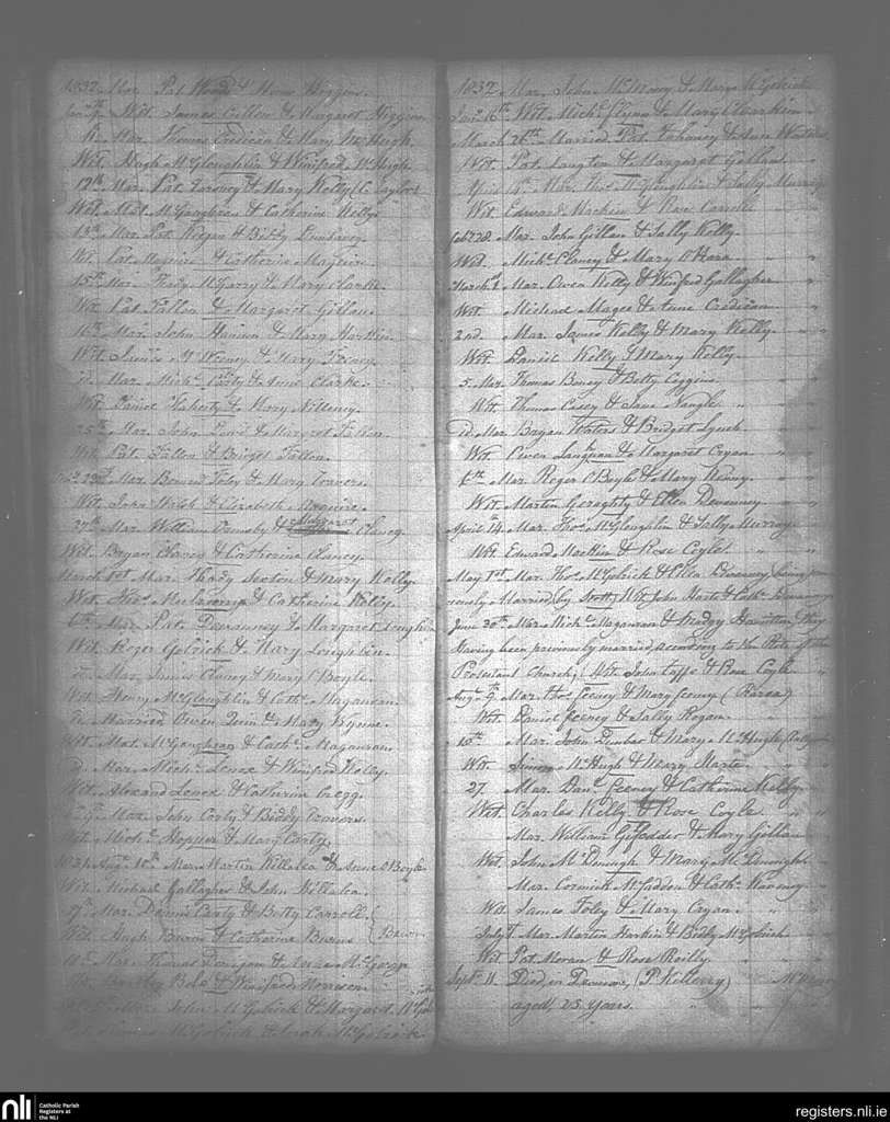 Killenummery; County of Sligo, Leitrim; Diocese of Ardagh. Marriages, Jan. 1832 to Sep. 1832