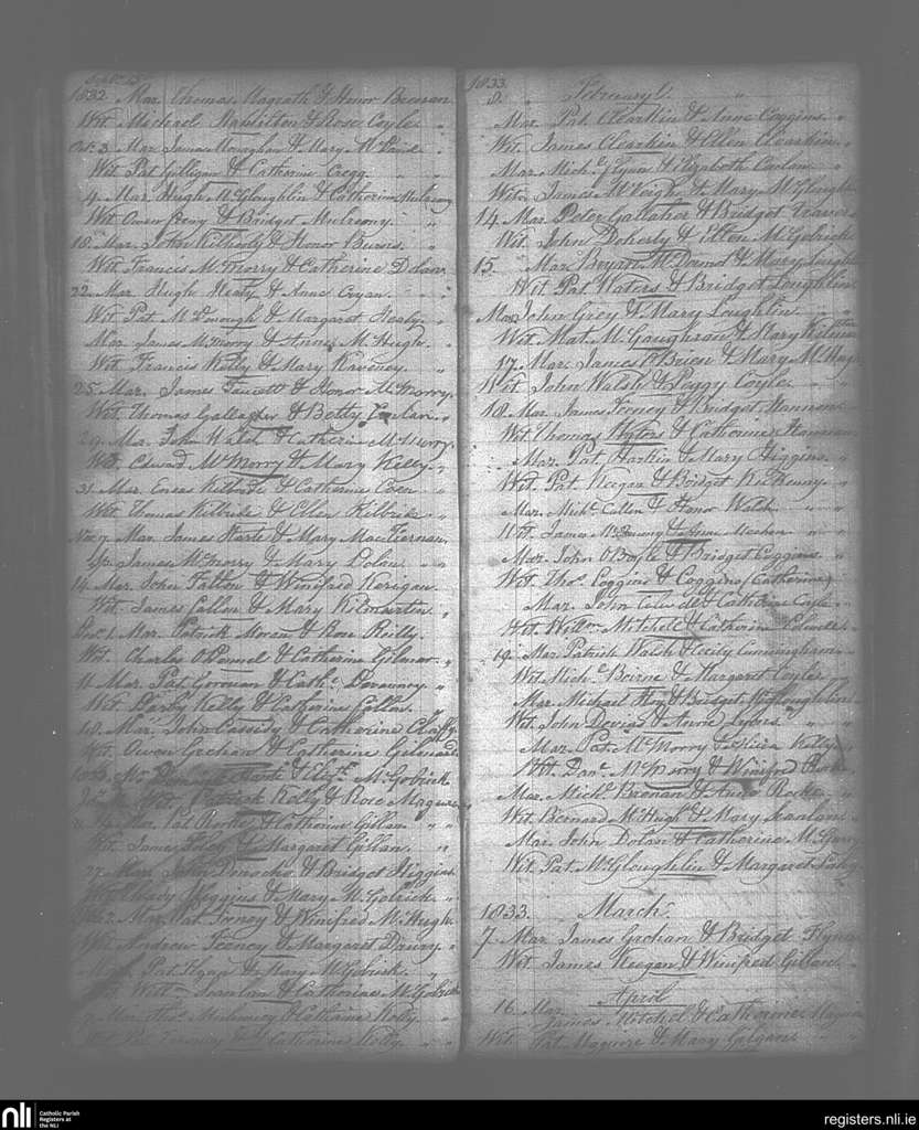 Killenummery; County of Sligo, Leitrim; Diocese of Ardagh. Marriages, Sep. 1832 to Apr. 1833